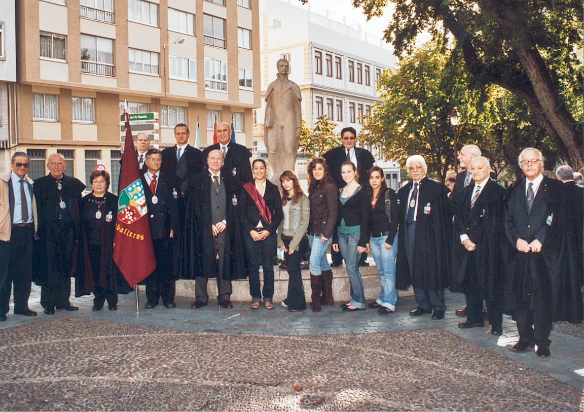 En el monumento a María Pita, el Caballero Eduardo Toba Blanco (hijo de Eduardo Toba Muiños, q.e.p.d., Caballero de Honor de la OCMP, 1998) lee la ofrenda de la Orden a nuestra Heroína |