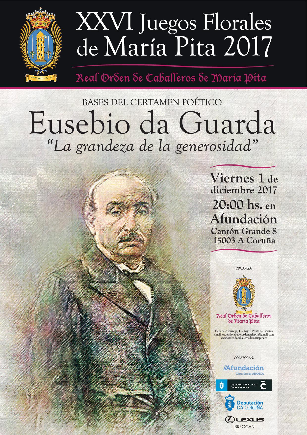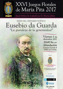 El viernes 1 de diciembre, con la solemnidad acostumbrada se han celebrado en el auditorio de AFUNDACIÓN, Cantón Grande núm. 8, los XXVI Juegos Florales María Pita 2017, teniendo como lema "La grandeza de la generosidad" y dedicados este año a la figura de Eusebio da Guarda al cumplirse ahora el 120º aniversario de su muerte.