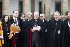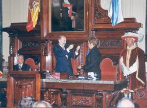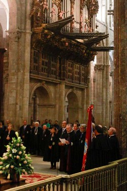 En el día de ayer, 15 de enero, se ha producido el óbito de nuestro Caballero de Honor del año 2005. Todavía hoy recordamos con nitidez el interés con que recibió nuestra propuesta de incorporarse a la excelsa nómina de personajes que constituyen este particular apartado de nuestra Orden, enriqueciéndolo con su fuerte y extraordinaria personalidad. Y también recordamos, con la misma nitidez, no ya la confirmación de su interés, sino el afecto y deferencia manifestados en su solemne Investidura. Tampoco podemos dejar de recordar el recíproco afecto expresado por el entonces Gran Maestre y Alcalde de la ciudad, Don Francisco Vázquez Vázquez, teniendo como testigo de excepción al que ahora es Maestre de Honor Fundador, Don Antonio Gundín Fandiño.