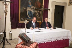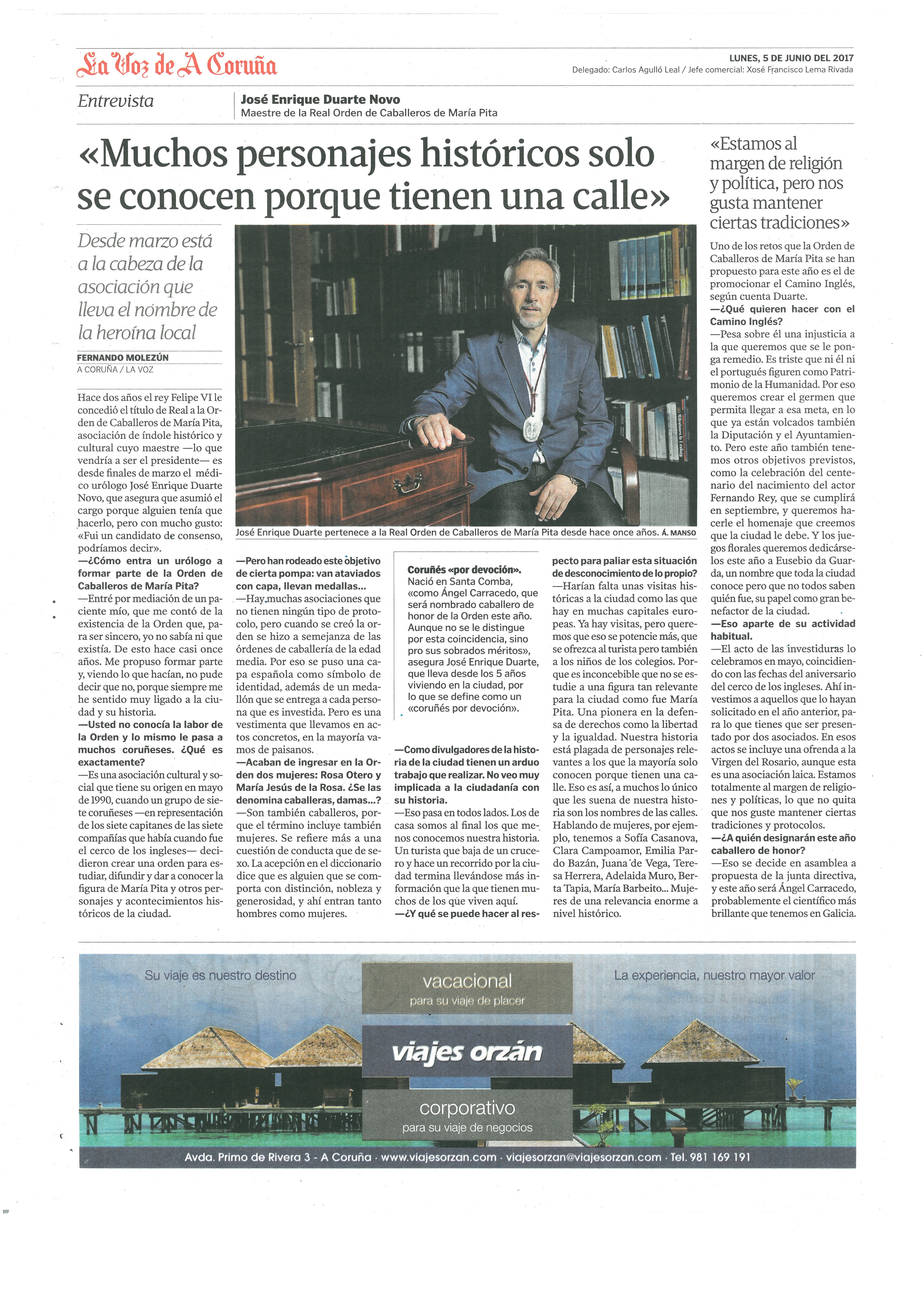 Como pueden ver en la imagen, se destaca en portada el momento de la firma por el Maestre José E. Duarte en el Libro de Honor del Pazo de Mariñan en presencia de D. Valentín González Formoso, Presidente de la Diputación de A Coruña, al finalizar la reunión de nuestra Junta de Gobierno con el Presidente de la Diputación para informarle sobre las actividades y proyectos de la Real Orden.