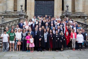 Al pie de la catedral compostelana, rodeado por una parte de su extensa familia.