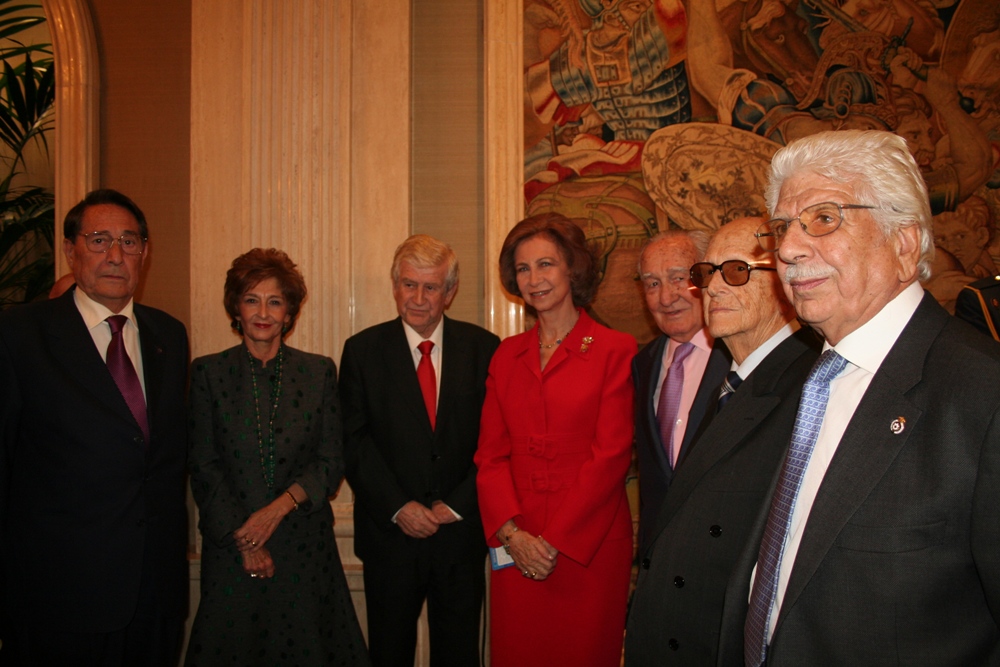El Caballero Antonio Abeijón con otros miembros del Patronato de la Fundación CREFAT recibidos en el Palacio de la Zarzuela por S. M. la Reina Doña Sofía con motivo de la reciente entrega de los premios Reina Sofía contra las Drogas que esta Fundación de la Cruz Roja concede anualmente.