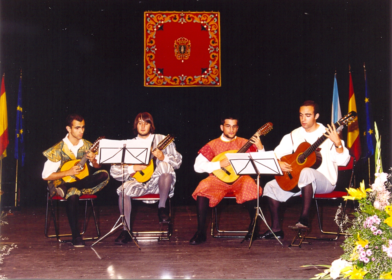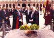 Ante la entrada al Castillo de San Antón para efectuar la ofrenda floral a los héroes de la Defensa de La Coruña en 1589 |