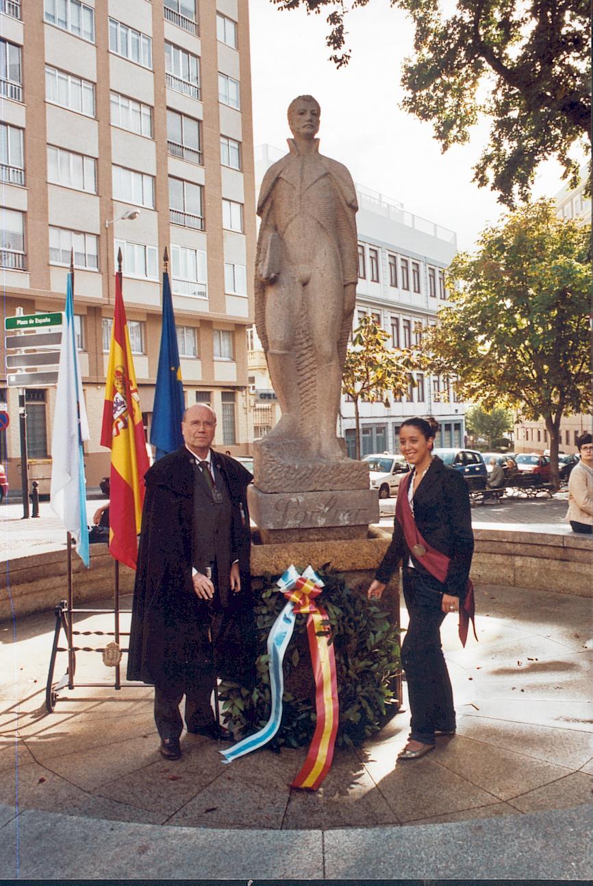 En el monumento a María Pita, el Caballero Eduardo Toba Blanco (hijo de Eduardo Toba Muiños, q.e.p.d., Caballero de Honor de la OCMP, 1998) lee la ofrenda de la Orden a nuestra Heroína |
