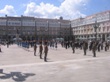 Cruzando la plaza de María Pita, de regreso al Palacio Municipal |