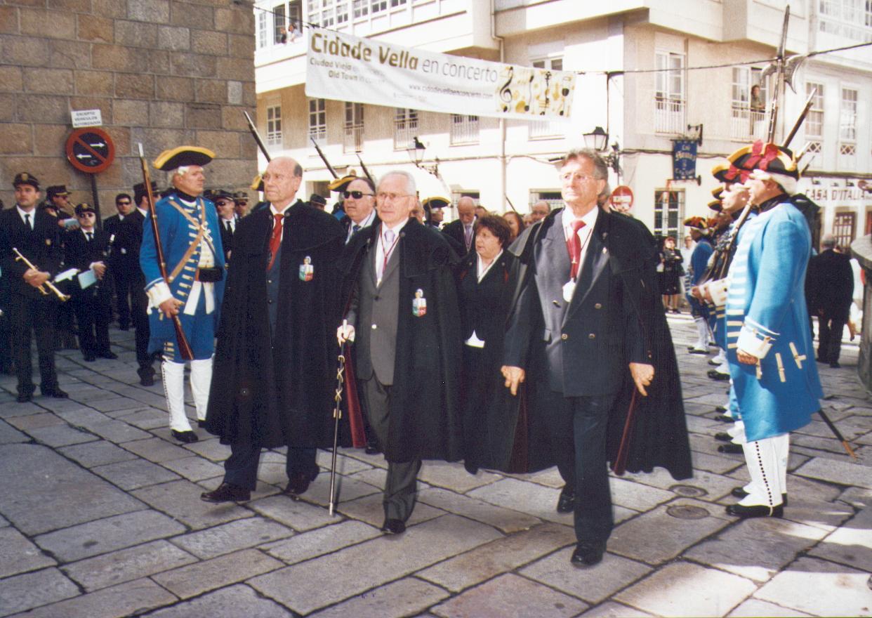 10:30 hs. También en posición de homenaje en espacio abierto, formó la Comitiva en el baluarte del Castillo de San Antón para la ofrenda en honor de los héroes de la defensa de La Coruña, en su rechazo al invasor inglés en 1589; el Maestre Iglesias Martelo presenta el acto y cede la palabra al Caballero Juan Carlos López Masachs que improvisa un emocionante y detallado recuerdo de La Gesta. |