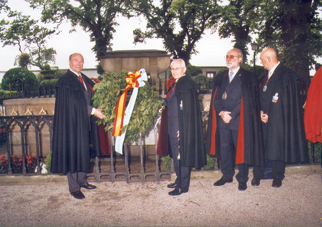 … para en posición de homenaje en espacio abierto efectuar la ofrenda a nuestros Compañeros fallecidos. El Caballero Masián Barbo pronunció conmovedoras palabras en recuerdo de nuestros amigos recientemente extintos, Fernando Suárez García, José María Gómez-Ulla y Lea y Manuel Galán Canle, teniendo para cada uno de ellos un recuerdo personal que hizo nos acordásemos de ellos con ternura y viveza |