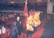 Los miembros de la Junta de Gobierno escoltan a las Meigas hasta sus asientos en el escenario |