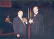 Ya con el Medallón al cuello, el Sr. Liaño Flores recibe de manos del Maestre Iglesias Martelo el Escudo de la OCMP y el Privilegio que lo refrenda como Caballero de Honor 2008… |