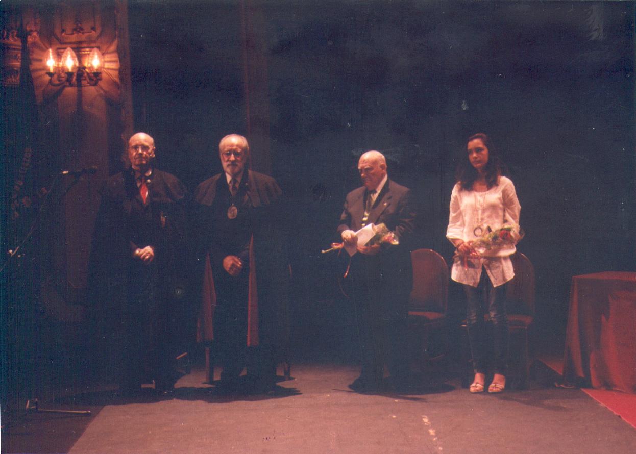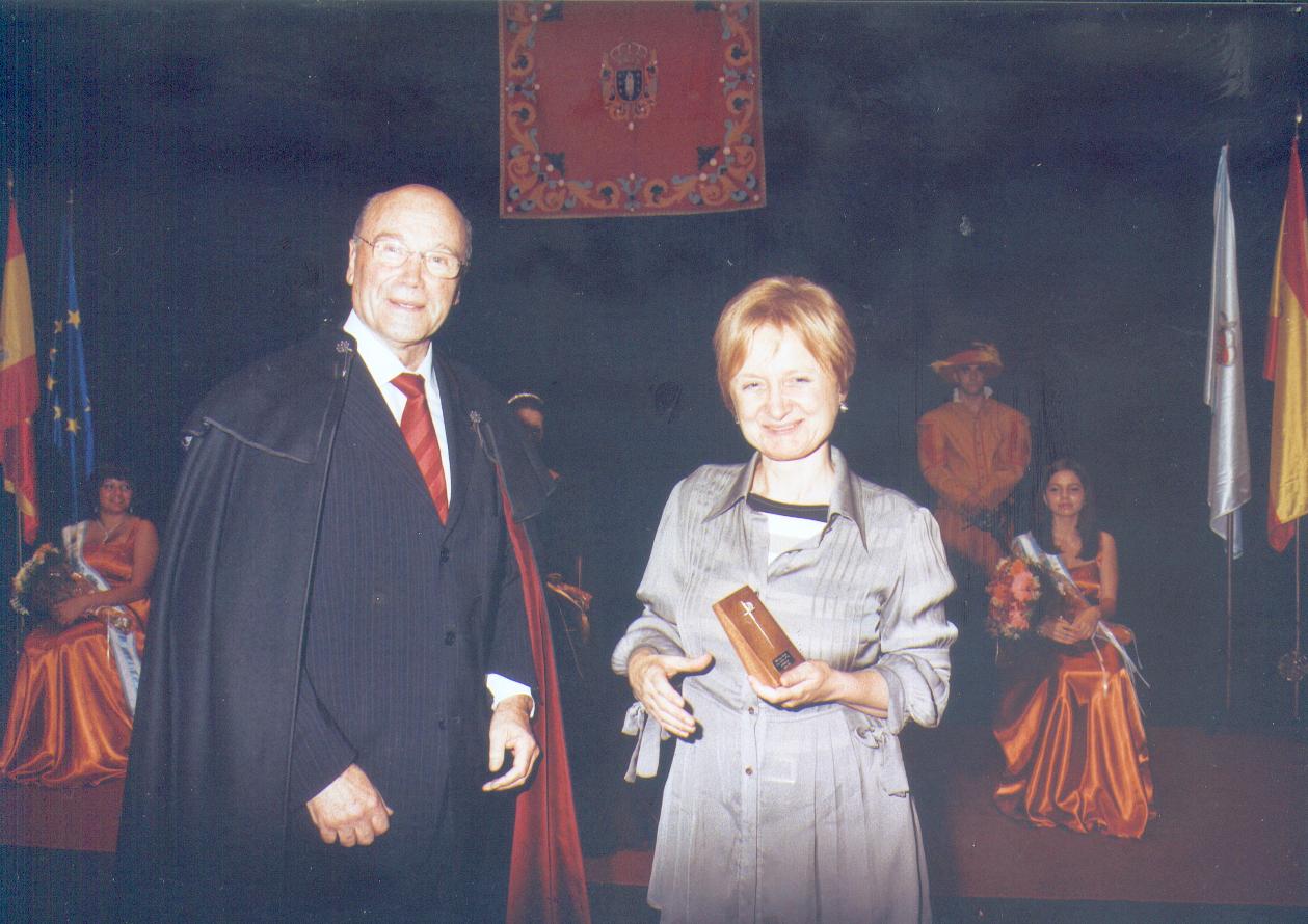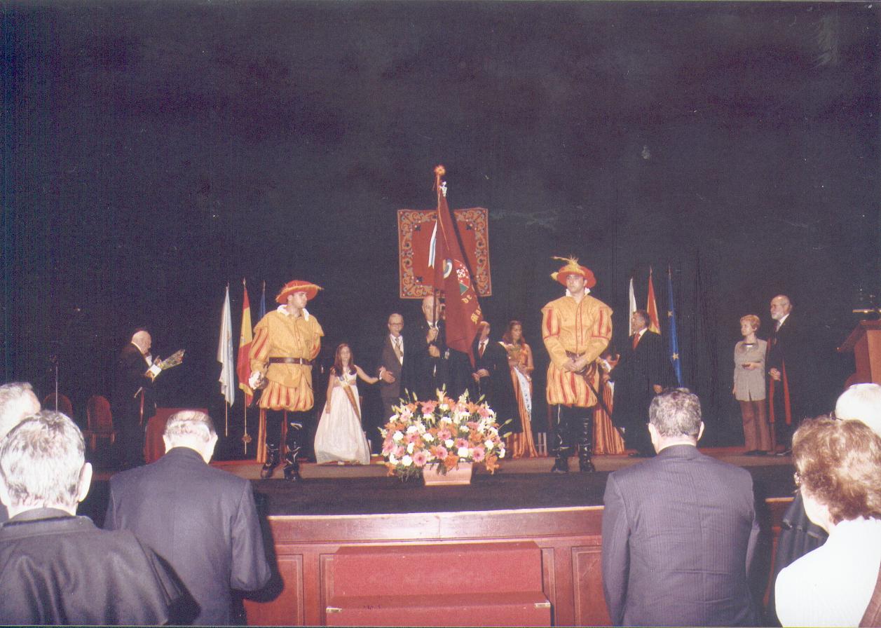 El Maestre de Honor Fundador, Antonio Gundín, acompaña a la Mantenedora, la Concelleira de Cultura Dña. Mª Xosé Bravo. |