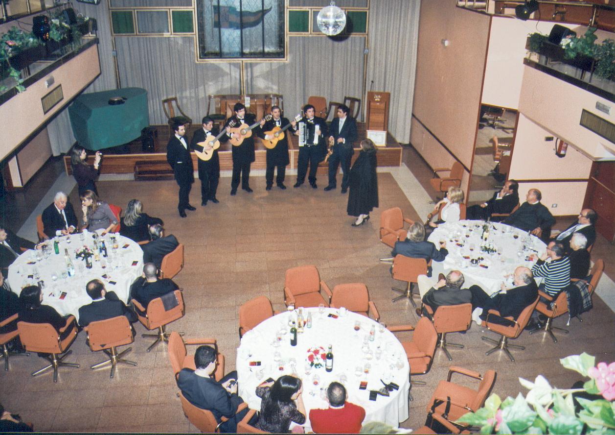 Invitada ex profeso para este evento, por la gran amistad que une a los componentes con la homenajeada, La Tuna do Distrito Universitário do Porto deleitó a los presentes con un amplio y muy ameno repertorio de canciones por todos recordadas, de las que varias fueron coreadas por los comensales. |