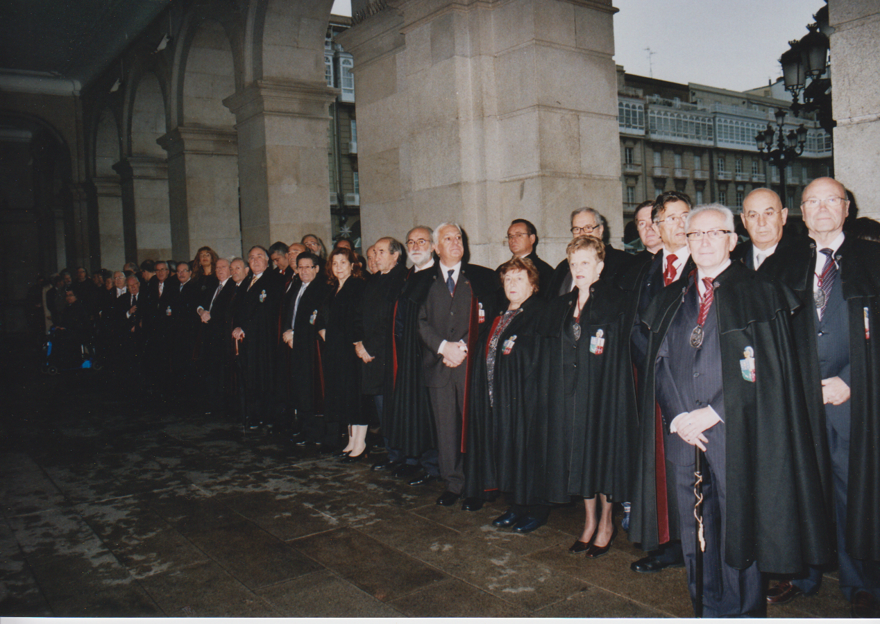 Participantes e Invitados oyen con respetuosa actitud el Himno a María Pita. |
