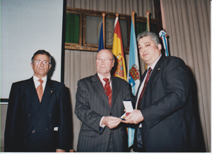 | El Lugarteniente de la OCMP, D. Manuel Balseiro González, en represtación del Maestre Iglesias Martelo, recibe la Medalla de manos del Sr. Arenas y en presencia del Sr. Fernández Caramés… |