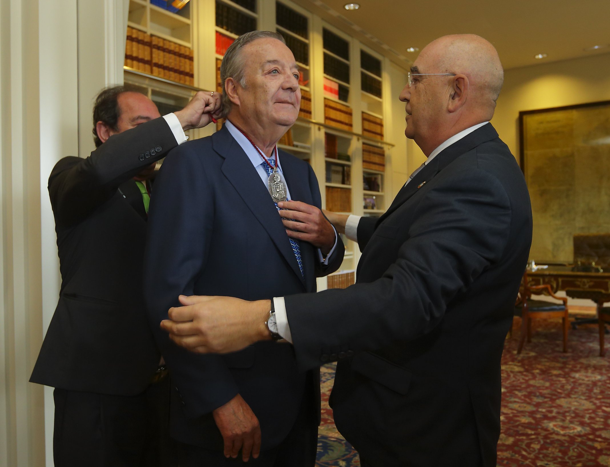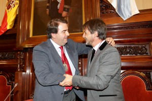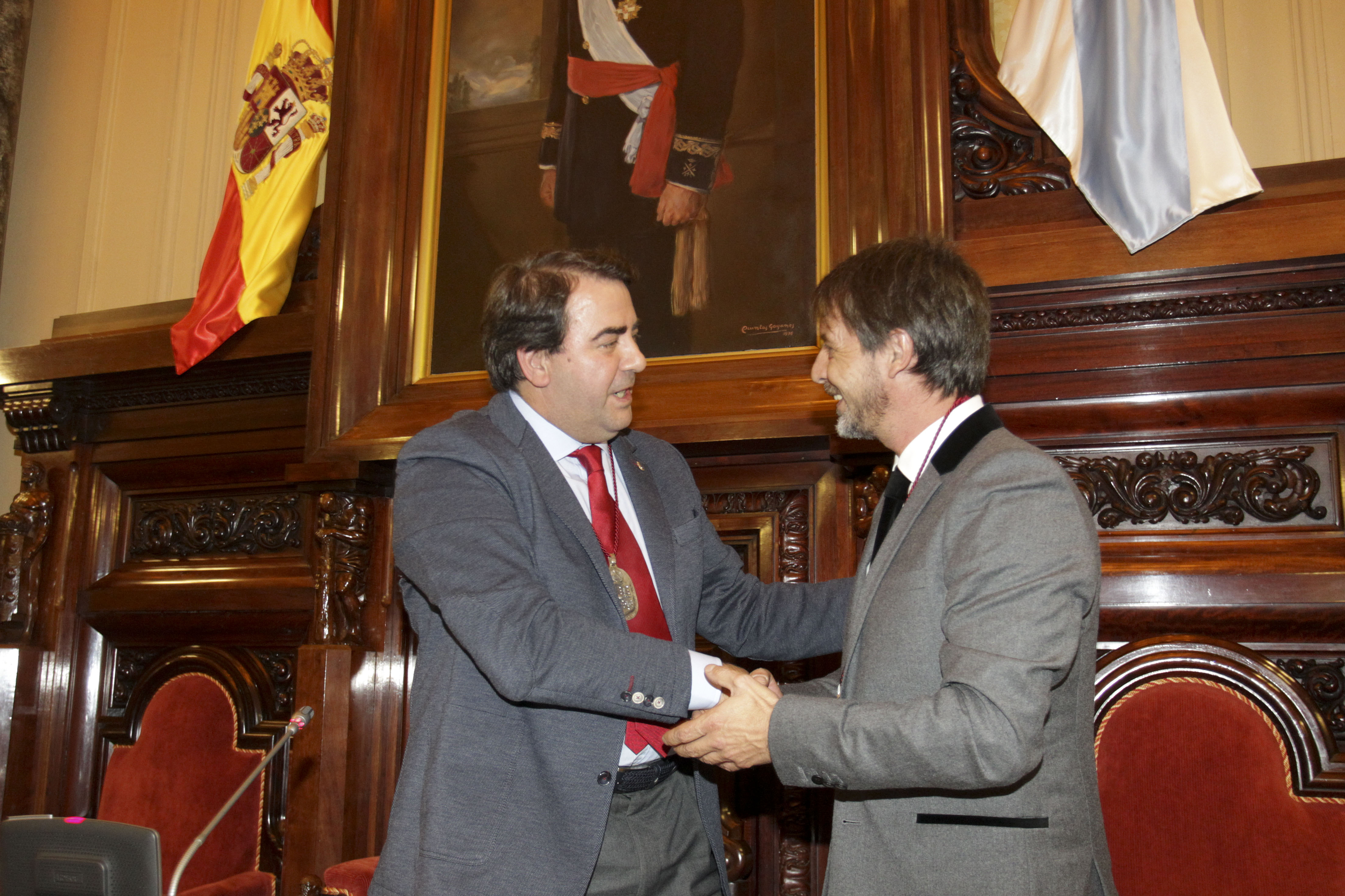 El Alcalde, y Gran Maestre de la OCMP, le entrega el Medallón en presencia del Maestre Vilasánchez. |