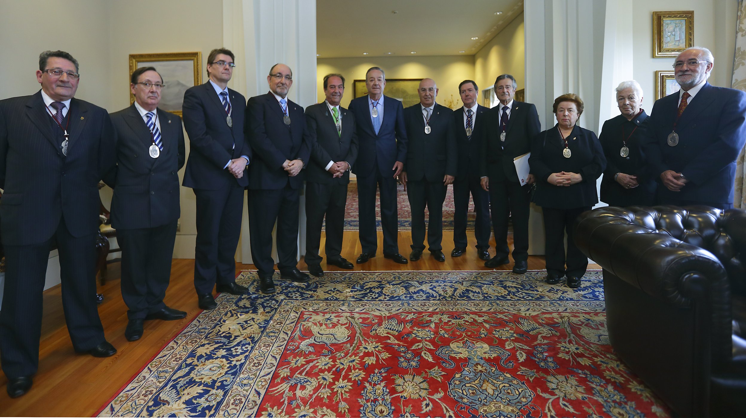 Imagen de grupo de los participantes con el Maestre Vilasánchez y el Canciller Caramés. |