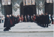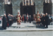 Los representantes de la Orden, con el Abanderado al frente, saliendo hacia la iglesia de Santo Domingo |