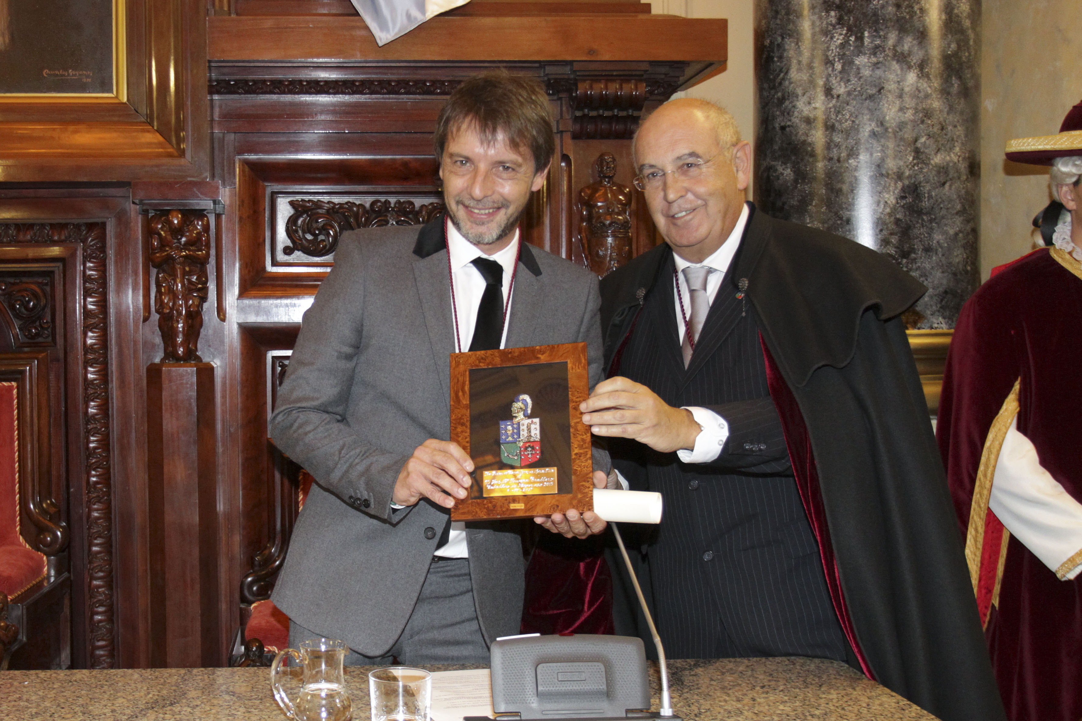 ...y el homenajeado le agradece la distinción. |