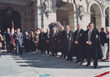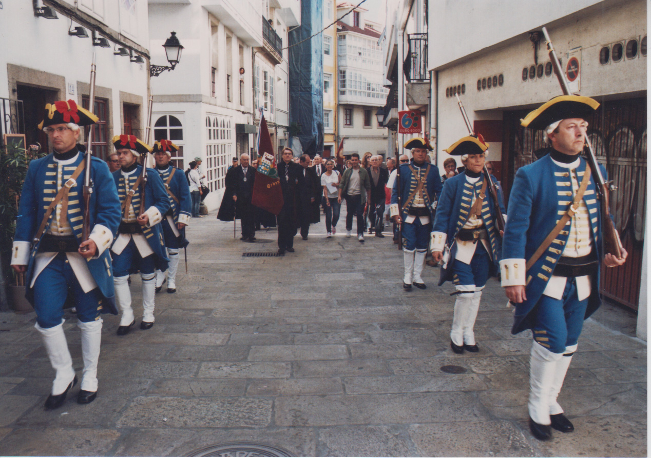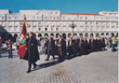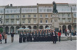 De nuevo en la Plaza de María Pita, los Caballeros de la Orden escoltan al Alcalde que va a cerrar el Acto pasando revista a la fuerza de honores. |