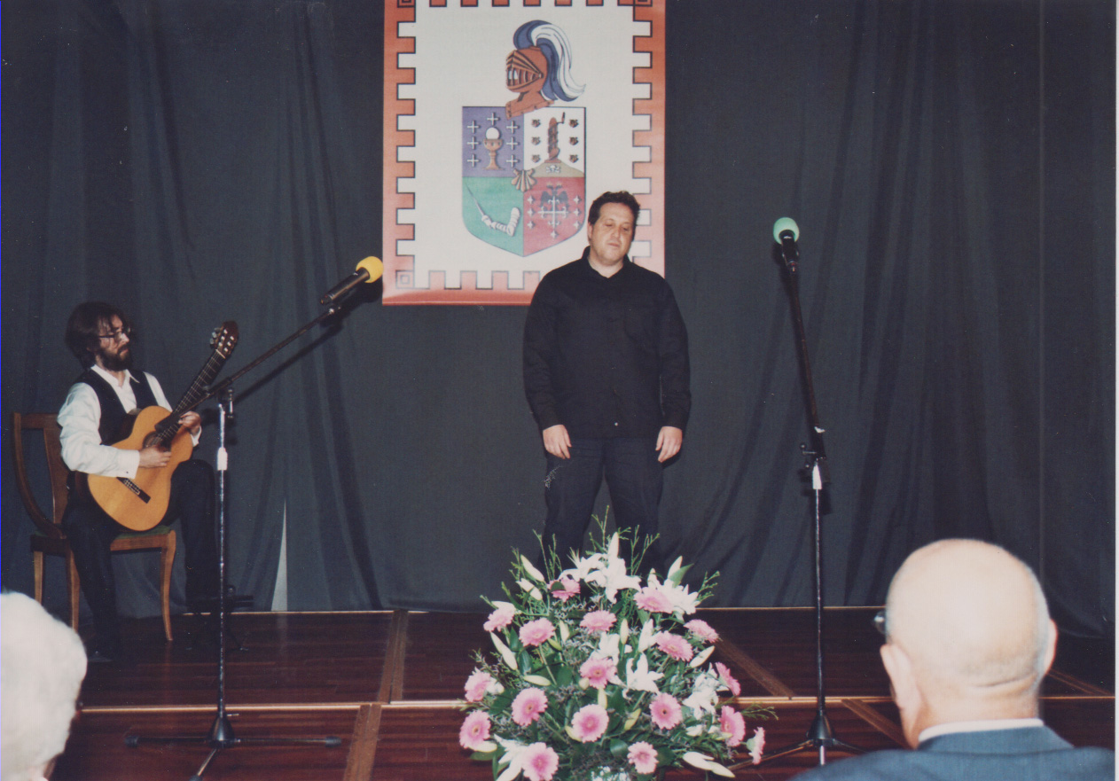 El intérprete Pablo Rodríguez con el Canciller Caramés, mantenedor y director del recital. |
