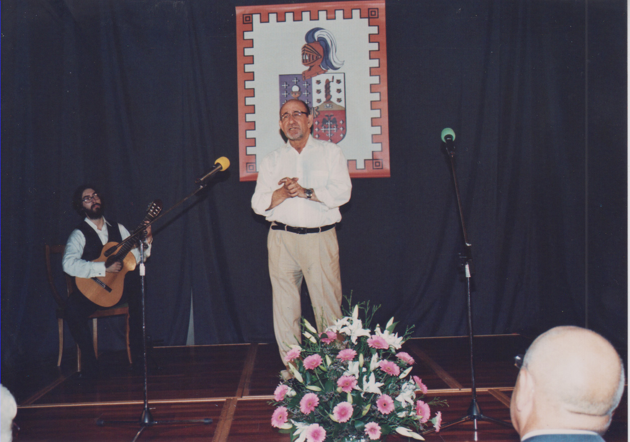José Navas Ramírez Cruzado recitando su poema “Romance de la Torre Vieja”. |
