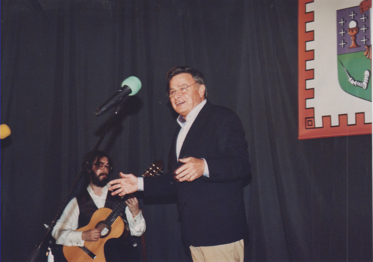 La presentación del recital por el Canciller Caramés, mantenedor y director del acto. |