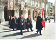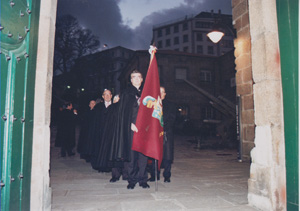 Entrada en la VOT del Abanderado y los Caballeros asistentes. |