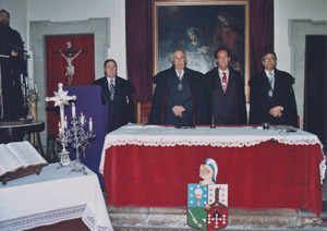 Maestre, Lugarteniente, Canciller y Clavero iniciando el Capítulo con una oración. |