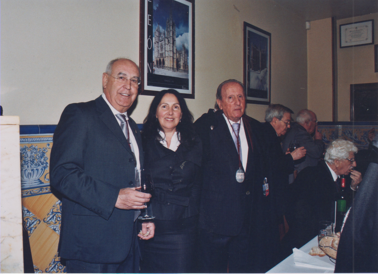 Antes de empezar el Acto, el conferenciante departiendo con el Maestre Vilasánchez y con Manuel Balseiro, miembro de la Orden que participa en esta ocasión como presentador del conferenciante. |