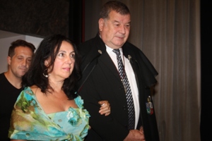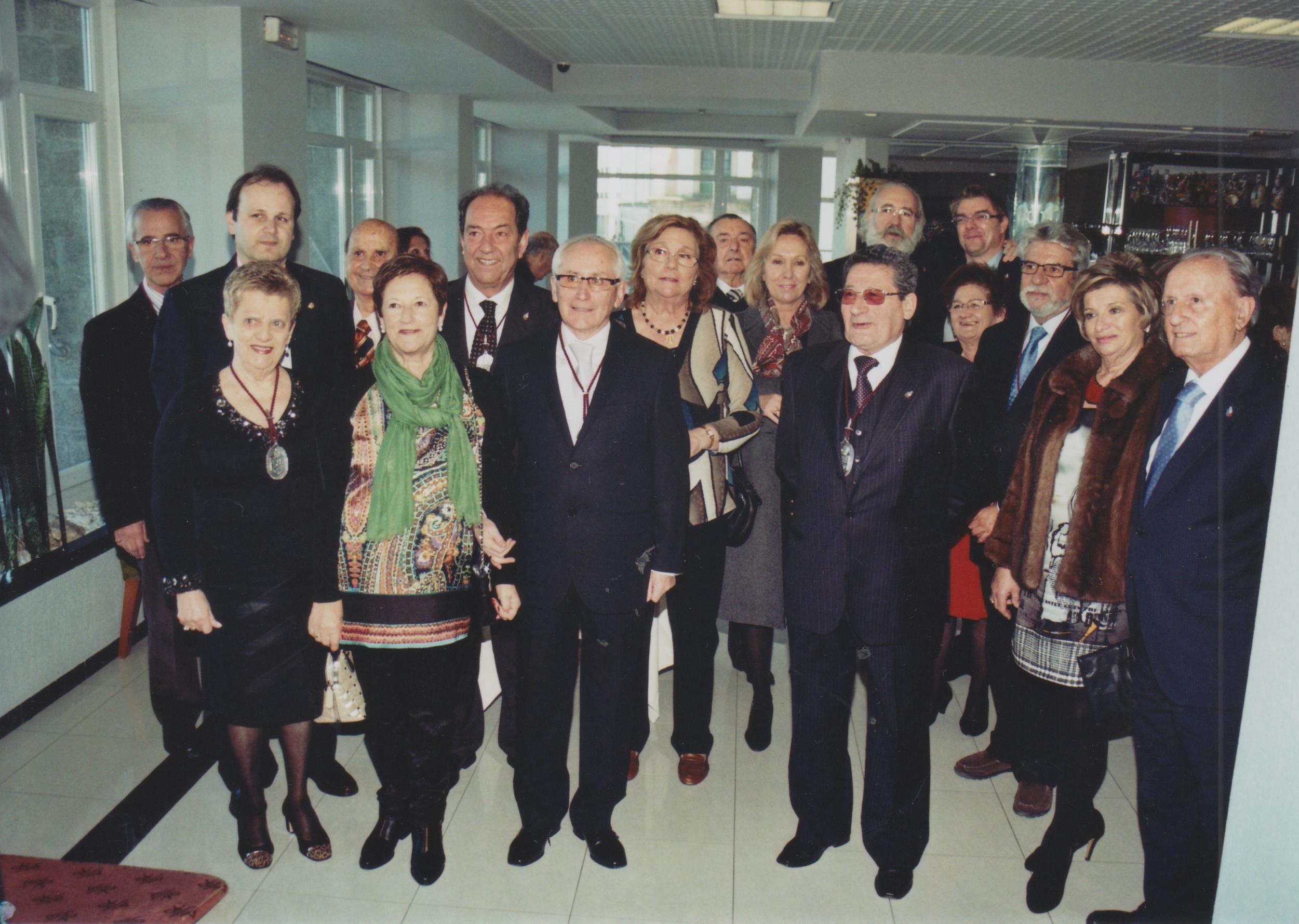 Vicente Iglesias Martelo acompañado por diversos miembros de la Orden, a la entrada del salón donde se va a realizar el acto. |
