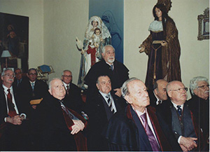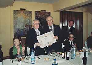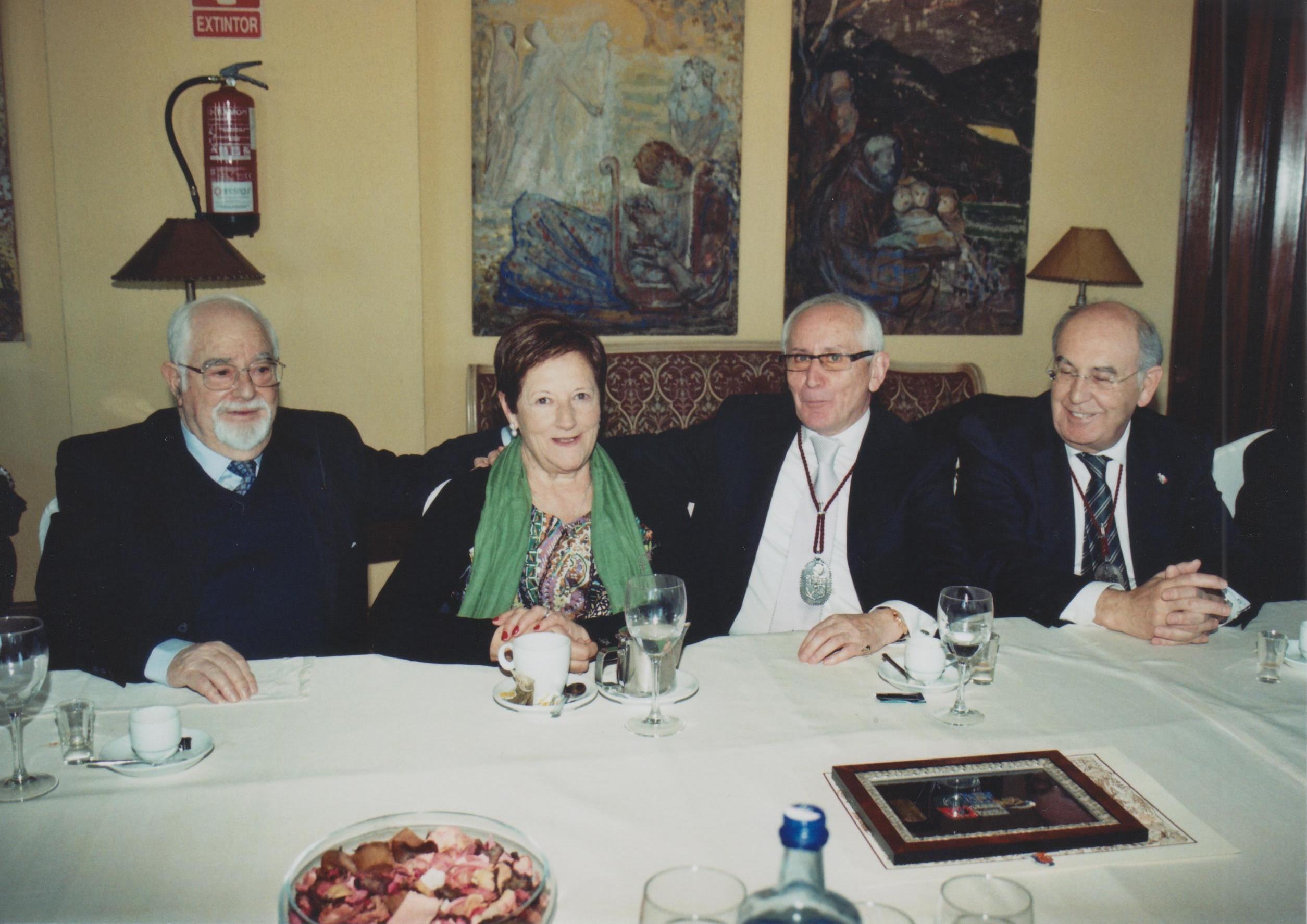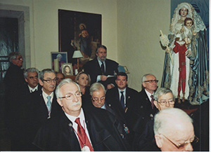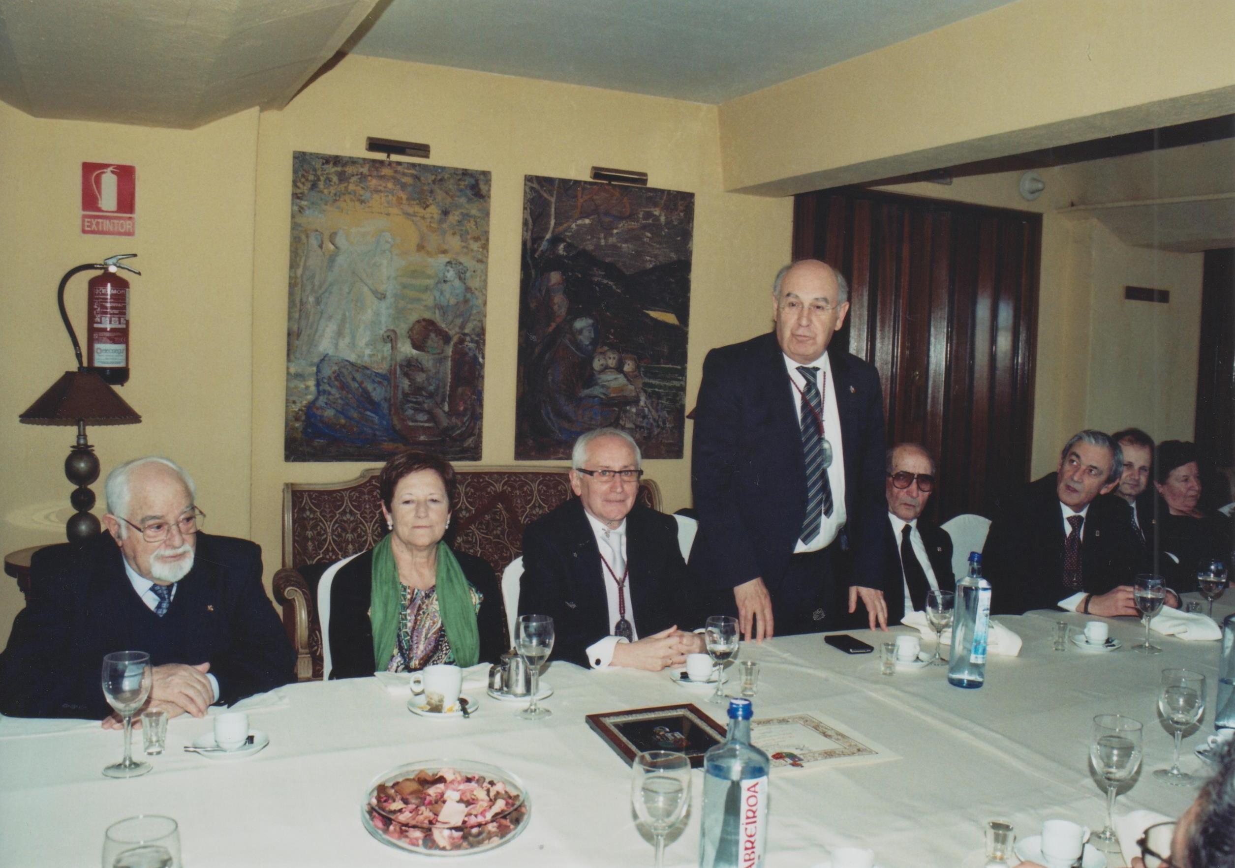 Imágenes con el Caballero de Mérito Vicente Iglesias Martelo acompañado por miembros de la Junta de Gobierno y diversos Caballeros participantes en el homenaje. |