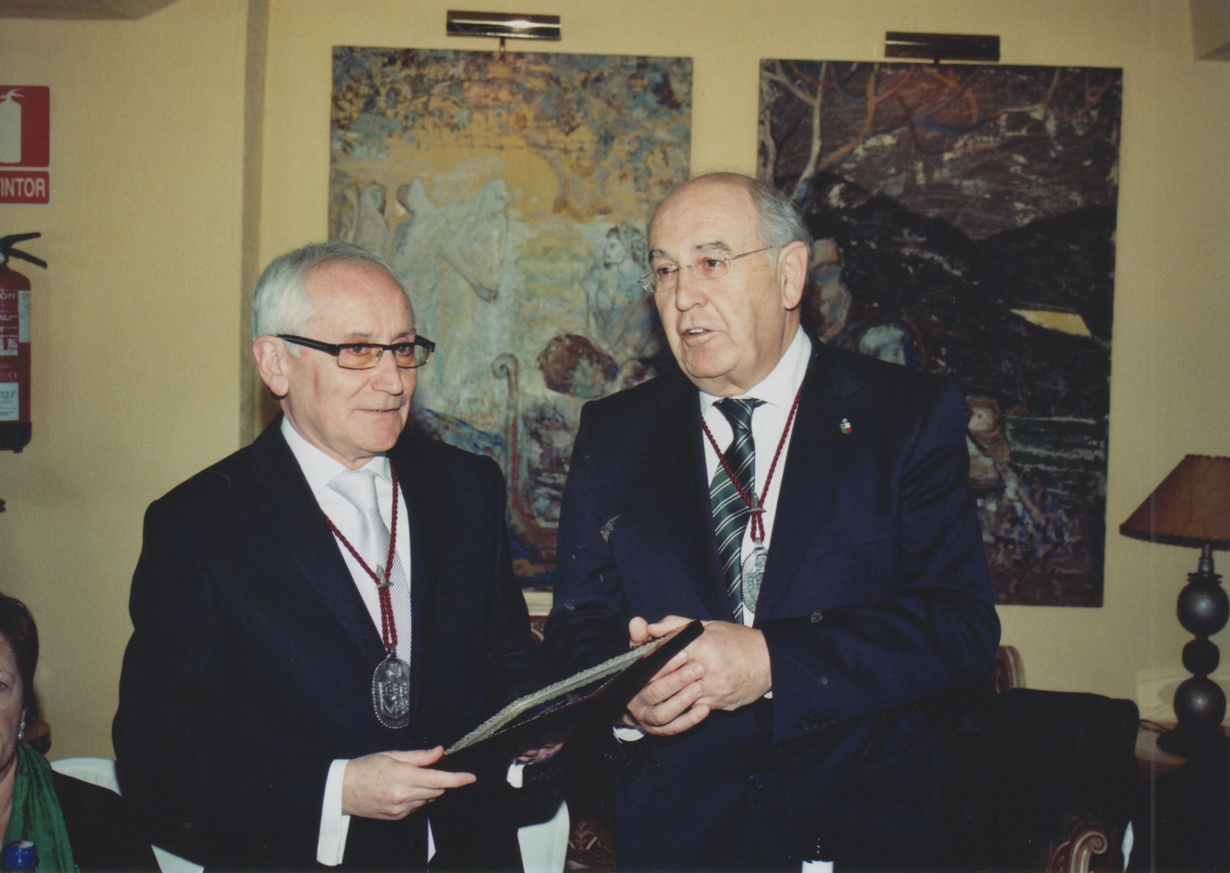 El Maestre y el homenajeado con la placa de la Orden. |