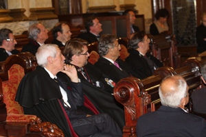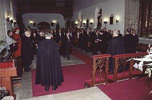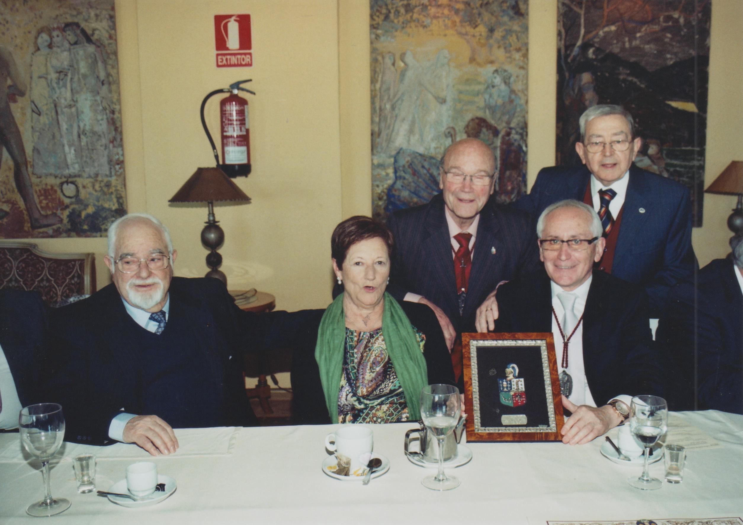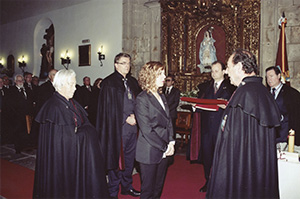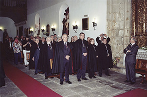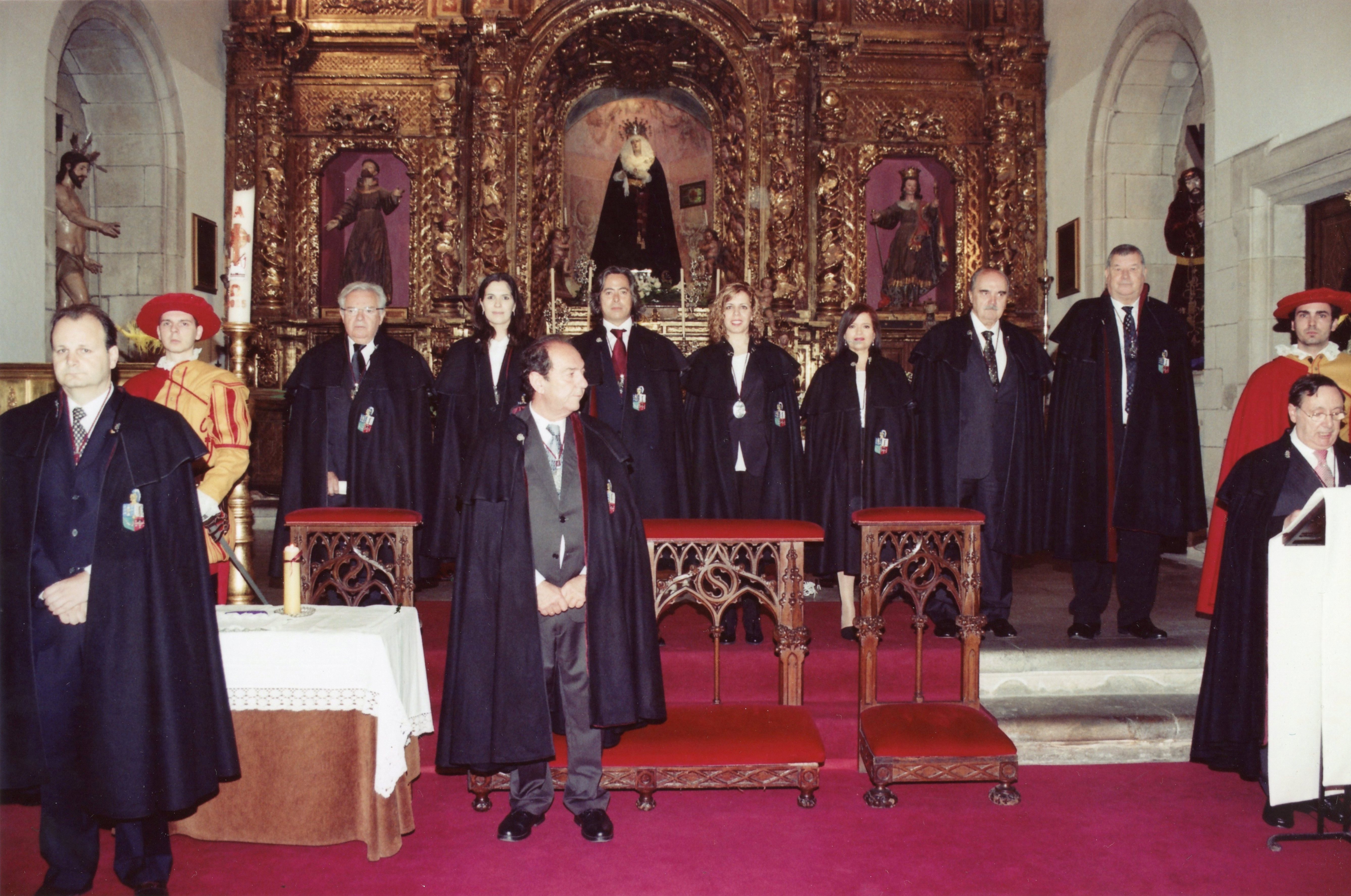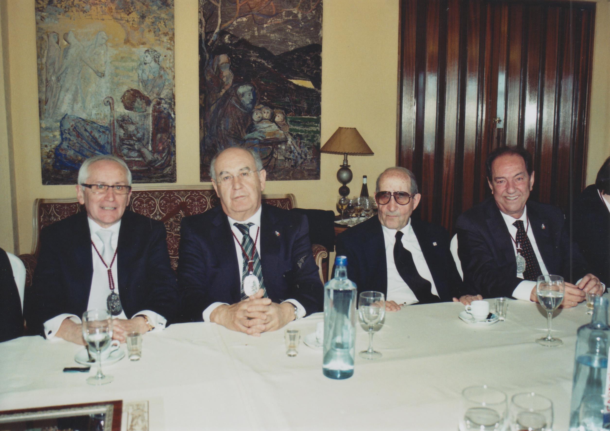Maestre, Lugarteniente, Vicecanciller y Clavero presidiendo el Capítulo Ordinario y, a su lado, el Maestre de Honor Fundador y otros miembros de la Junta de Gobierno. |
