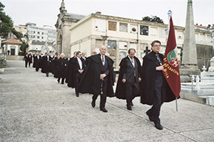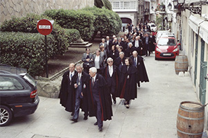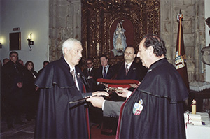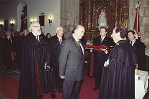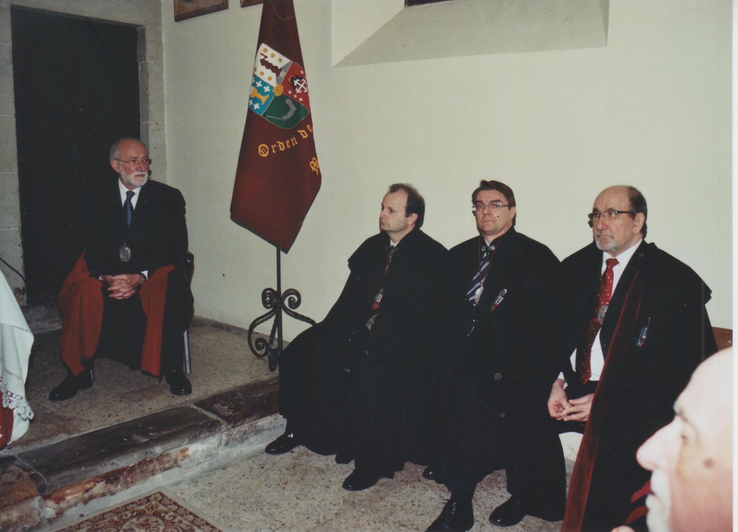 El Maestre, D. Manuel Mª Mora y Pita da Veiga, el Canciller, D. Fernando López Rodríguez, y el Maestro de Ceremonias, D. José Luis Fernández Caramés. |
