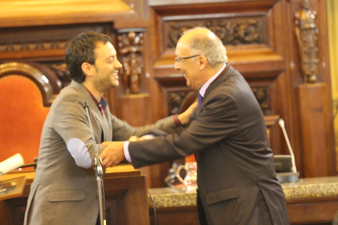 ... e inviste al Alcalde como Gran Maestre de la Orden de Caballeros de María Pita, entregándole el medallón y los atributos del cargo. |