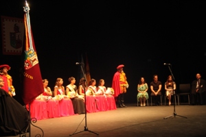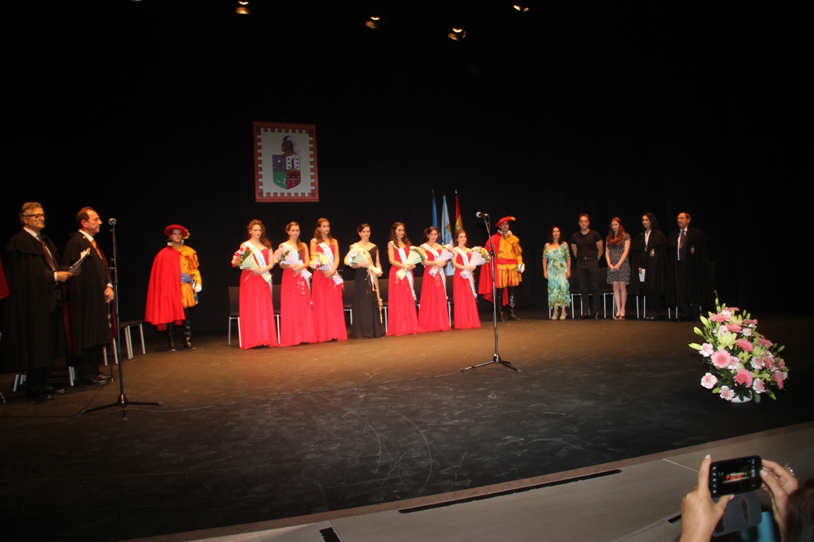 Las Meigas y Damas sobre el escenario, acompañadas por la Guardia de los Tercios de Flandes y otros participantes en los Actos. |