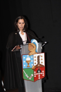 Presentación de la conferenciante por el Canciller de la OCMP, Fernando López Rodríguez. |
