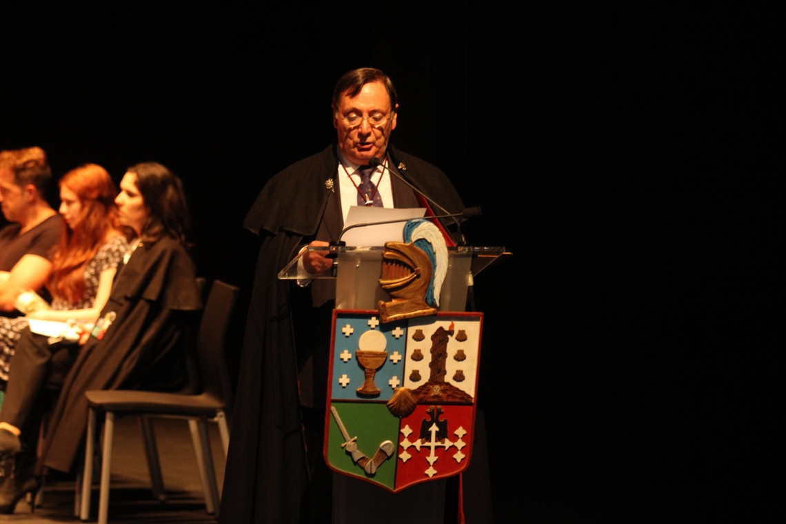 El Maestre Manuel María Mora y Pita da Veiga cerrando la primera parte del Acto. |
