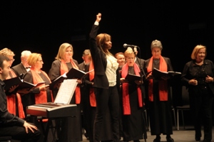 ... y la Coral Polifónica del Centro Social de la Sagrada Familia interpretando el Himno a María Pita. |